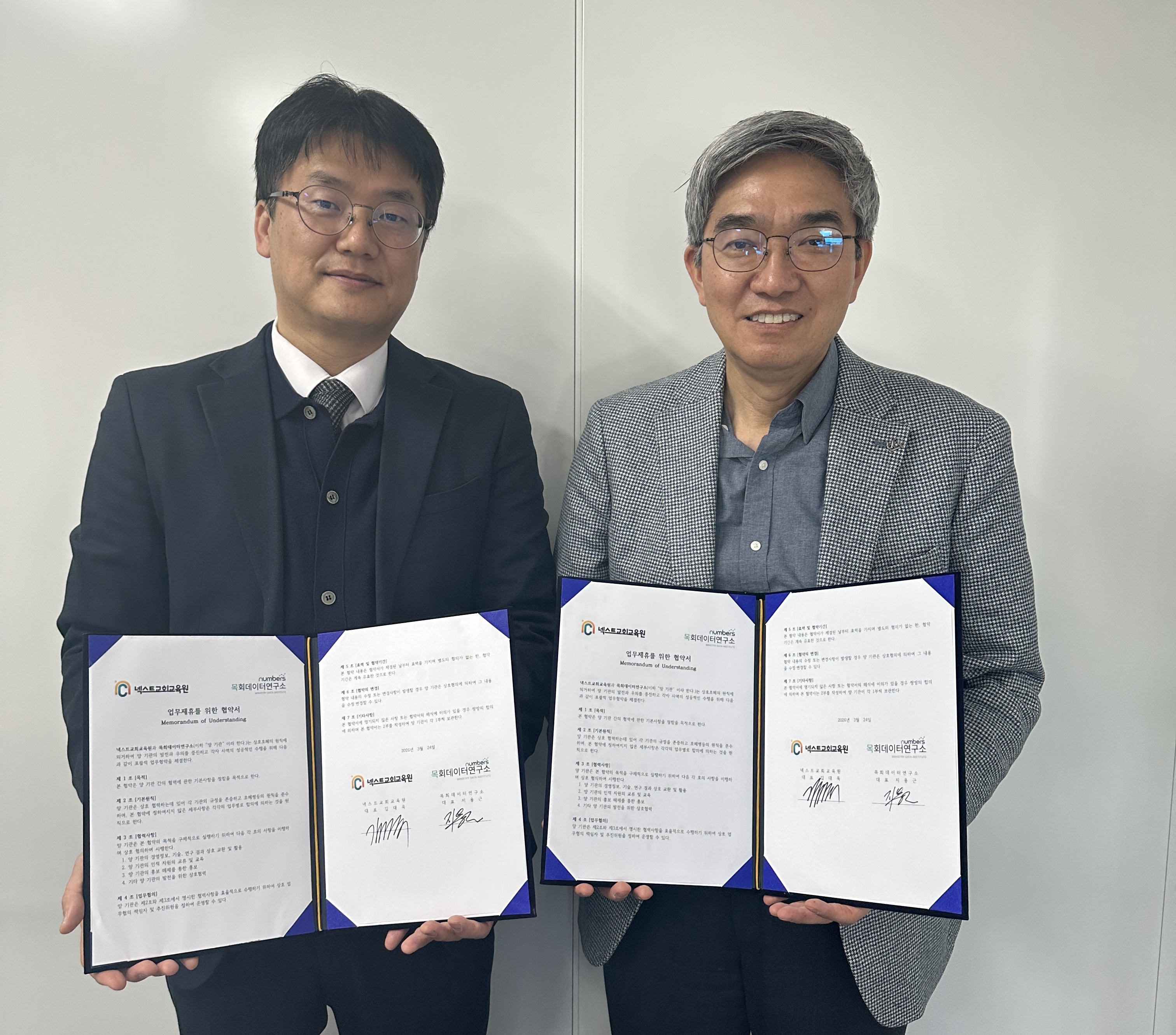 우리 연구소는 3월 24일(화요일) 넥스트목회교육원(대표 김대욱)과 업무 협약(MOU)을 체결하였습니다.