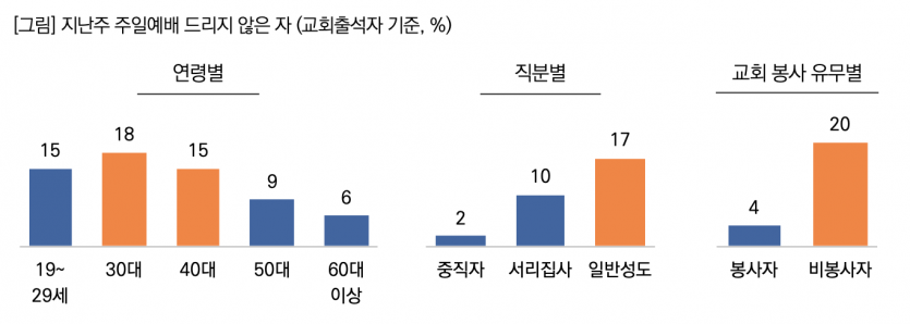 ‣ 현장예배를 드리지 않는 사람들에 대한 교회의 적극적인 권면과 대응이 필요해 보이는 부분이다.