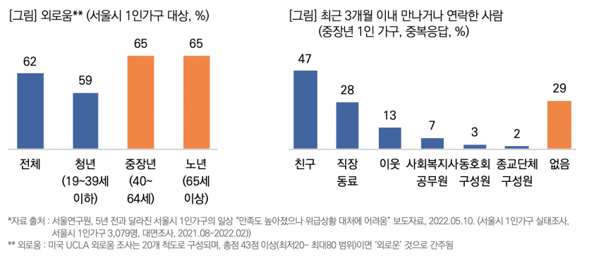 ◎ 서울시 중장년 1인 가구의 65%, ‘외롭다’!