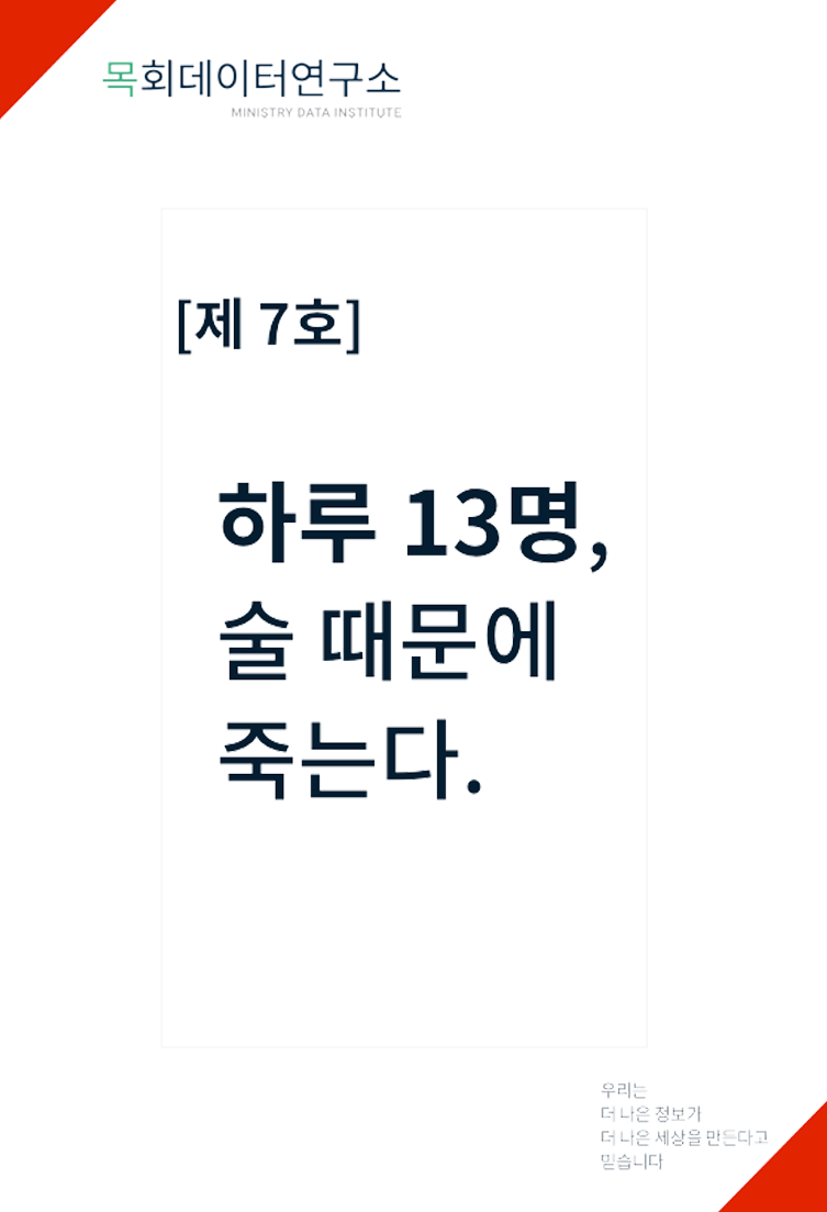 제목은 "하루 13명 술 때문에 죽는다!"로 하고 음주와 폭음율, 청소년, 여성 음주율, 기독교인 음주율, 음주의 폐해 등을 순서대로 구성해 보았습니다.